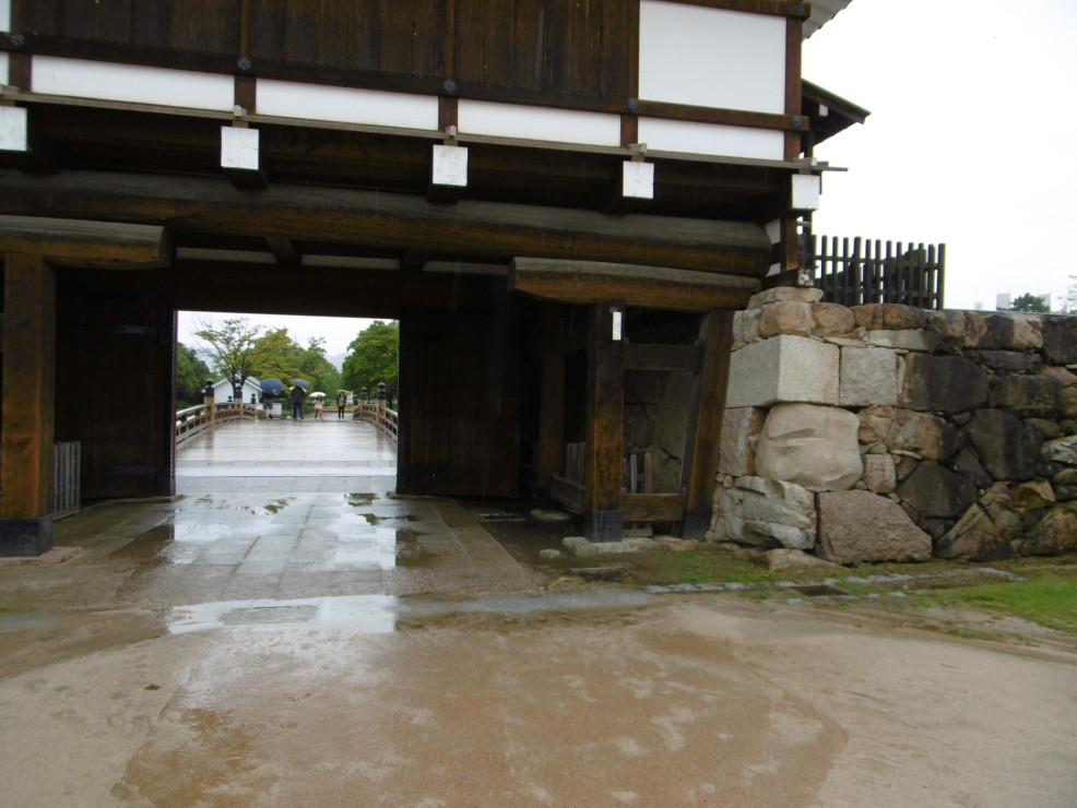 もちろん御門橋を抜けた広場も水溜りばかりでござった…