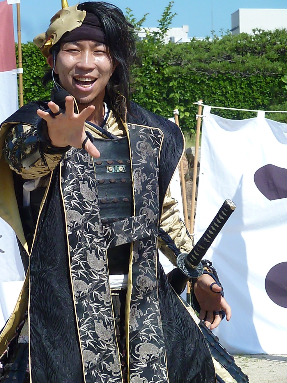 演舞の途中出ちゃったお鼻を隠す政時(#^.^#)