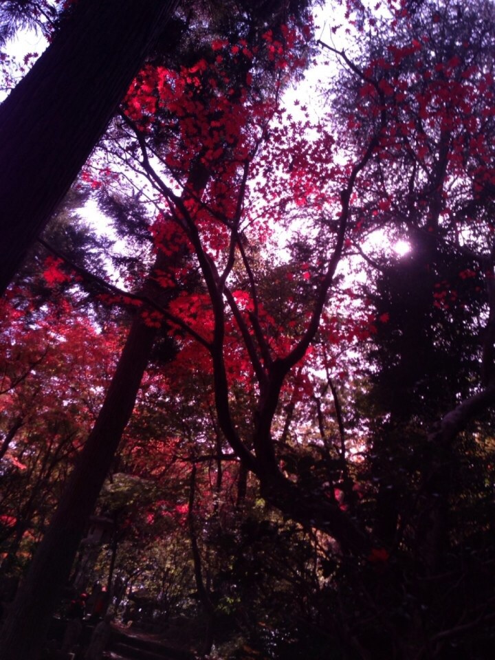 こんにちは、隆景様。紅葉が真っ赤できれいですね。木が黒く見えるのも素敵です♪