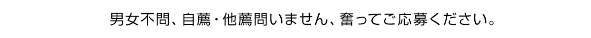 - 18歳~30歳くらいの方、男女不問。自薦・他薦も問いません。